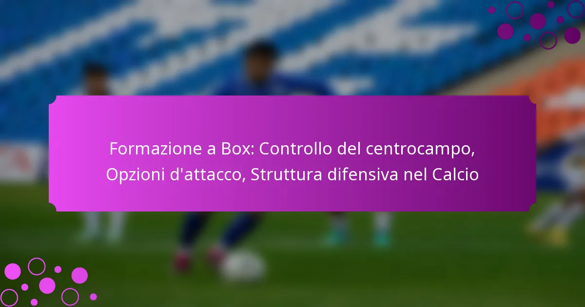 La formazione a box nel calcio è un assetto tattico che prevede quattro centrocampisti disposti a forma di quadrato, fornendo equilibrio tra difesa e attacco. Questa formazione migliora il controllo del centrocampo, consentendo alle squadre di mantenere il possesso mentre creano opzioni offensive e una solida struttura difensiva.